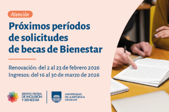 El Programa Becas está dirigido a estudiantes de la Udelar de todo el país que presentan vulnerabilidades socioeconómicas, familiares, sociales, personales, para iniciar o mantenerse en el sistema universitario.