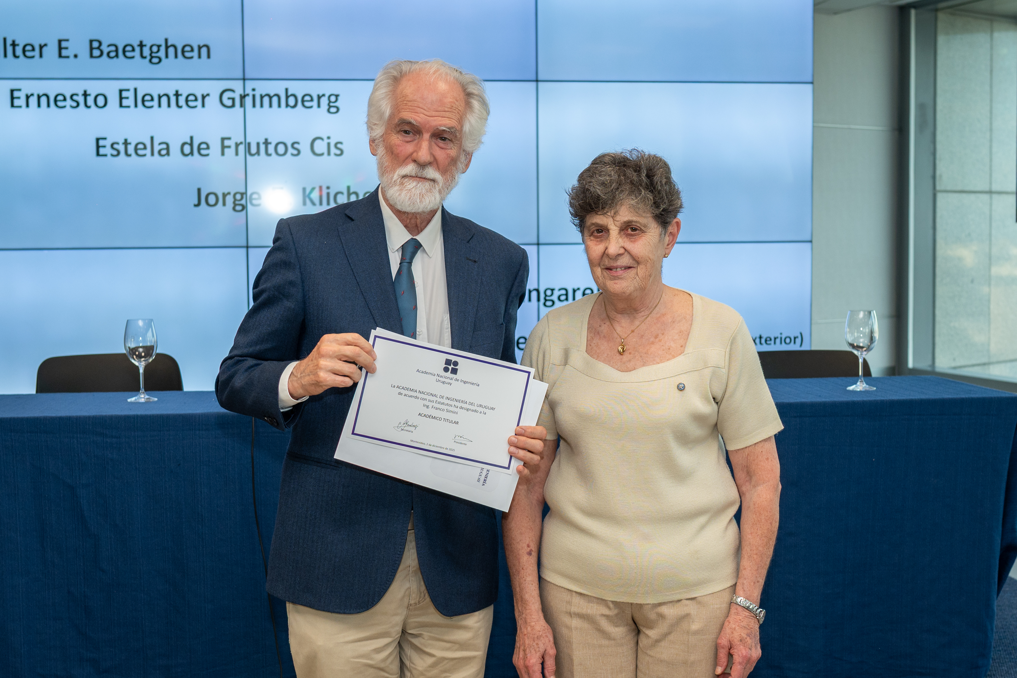 Nombre de los nuevos Académicos elegidos en la Asamblea del 8 de octubre de 2025 de acuerdo a lo establecido en el Estatuto de la Academia de Ingenieros del Uruguay: Walter E. Baetghen, Ernesto Elenter Grimberg, Estela de Frutos Cis, Jorge E. Kliche, Iván López Moreda, Eduardo Mangarelli, Alejandro Ruibal y Franco Simini.