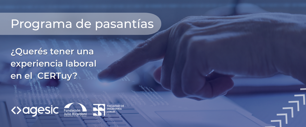 La Agencia de Gobierno Electrónico y Sociedad de la Información y del Conocimiento (AGESIC), la Fundación Julio Ricaldoni (FJR) y la Facultad de Ingeniería de la Universidad de la República (Fing – Udelar) lanzan la primera edición del Programa de Pasantías en Ciberseguridad.