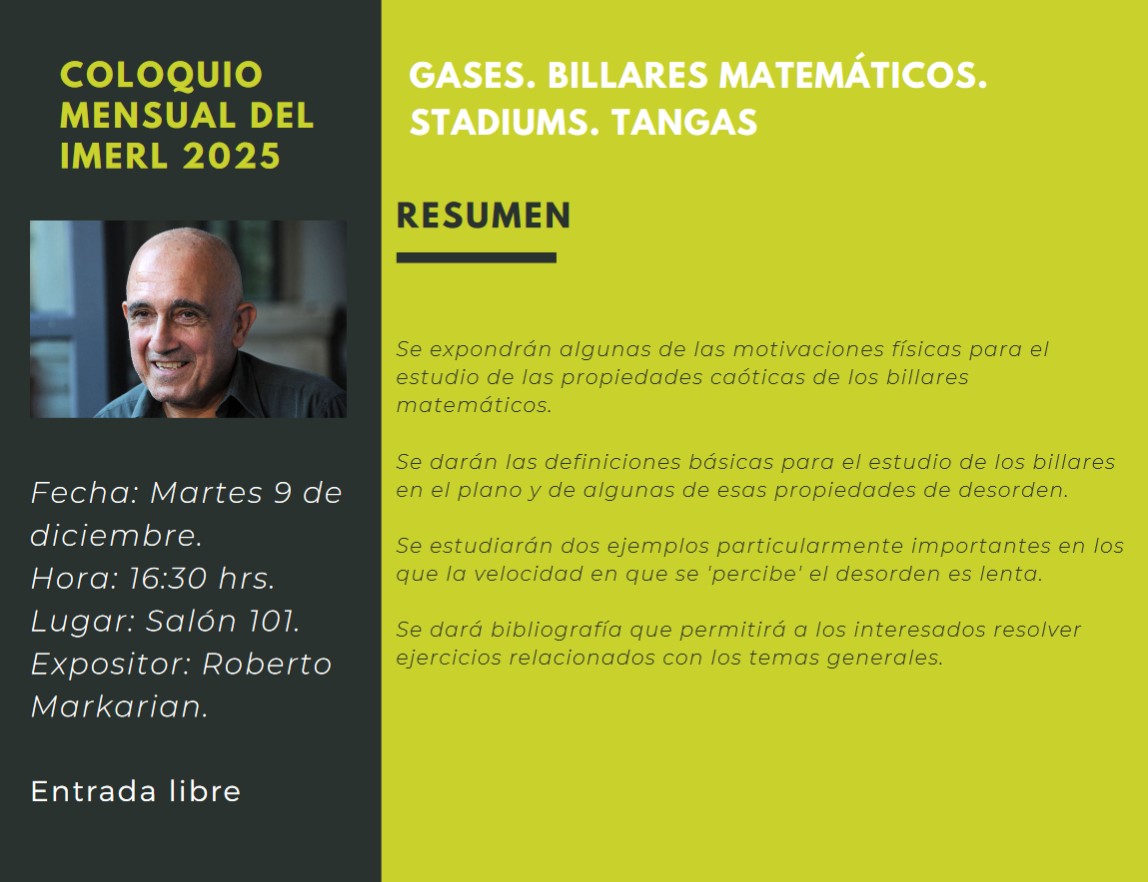 Coloquio del IMERL: Gases. Billares Matemáticos. Stadiums. Tangas
