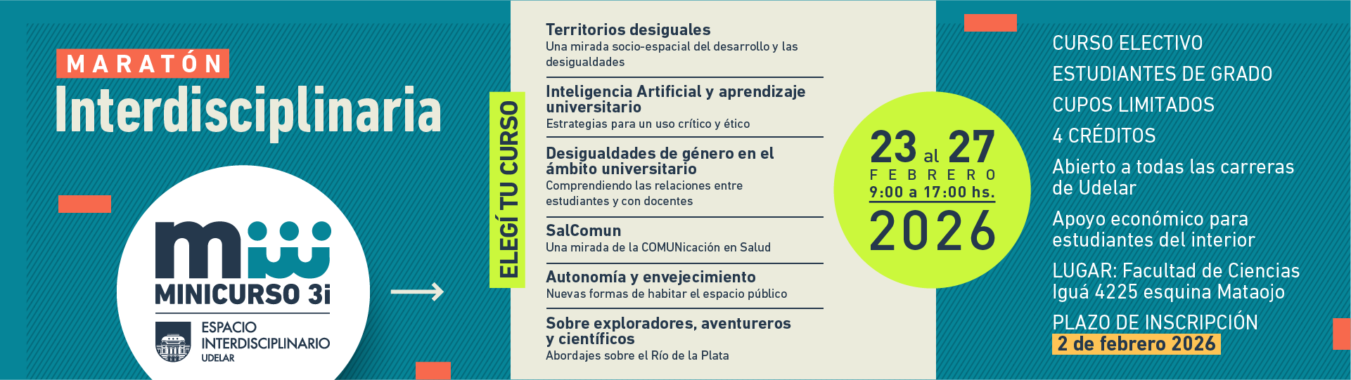 Están abiertas las inscripciones para la edición 2026 de la Maratón Interdisciplinaria que se va a desarrollar del 23 al 27 de febrero en la Facultad de Ciencias de Udelar. Esta actividad académica reúne seis m3i - Minicursos Interdisciplinarios, Intensivos e Integrados - dirigidos a estudiantes de grado de todas las áreas de la Udelar. Es posible elegir para realizar un solo curso dentro de la oferta y a su vez, habrá instancias de trabajo en conjunto dónde se reunirá a los/as estudiantes de los seis cursos.