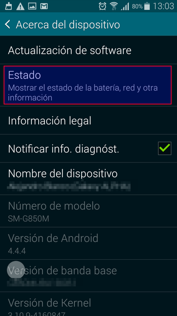 - Acceder a "Ajustes/Acerca del dispositivo"