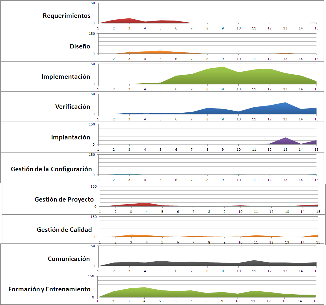 esfuerzo por disciplinas / tiempo