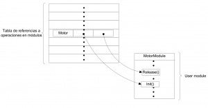 Donde user es el nombre de la sección y uTab es una estructura para almacenar las posiciones de memoria de las operaciones que exporta el módulo y su nombre. En la sección detalles de implementación en el firmware se puede conocer más sobre el significado de la instrucción #pragma romdata user, podemos por el momento asumir que sirve para almacenar la estructura uTab en un lugar conocido dentro de la memoria de programa.