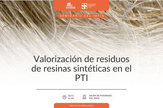 El jueves 20 de noviembre tendrá lugar en el Salón de Posgrados del IMFIA, un nuevo seminario del instituto titulado "Valorización de residuos de resinas sintéticas en el PTI", que será dictado por Carolina Ramírez, Florencia Curi y Lucía Rivadavia.
