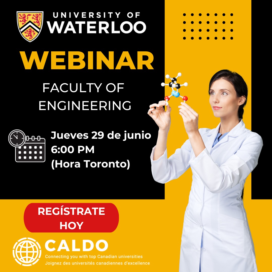 Este viernes 29 de junio el consorcio de universidades canadienses CALDO brindará un webinar en donde hablará de la maestría de la Facultad de Ingeniería de la University of Waterloose y se brindará información sobre programas de estudios, oportunidades de becas ofrecidos por la universidad y otras opciones de financiamiento.